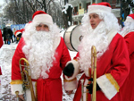 Целый час дедушки морозы развлекали гостей «Эрмитажа» музыкой из популярных новогодних кинофильмов, новогодними и рождественскими песенками, чем привели в восторг не только детей, но и их родителей. Кульминацией выступления оркестра стало новогоднее дефиле, которое оркестр специально приготовил для этого мероприятия (даже попурри из популярных новогодних мелодий было написано специально для этого случая). 10 минут деды морозы маршировали по площадке, сходились и расходились, образуя различные фигуры, а потом вдруг перестали играть и под аккомпанемент баса и ритм секции зазвучал «Вечерний звон»!
