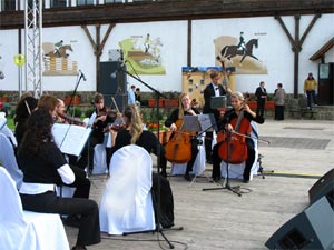 3 сентября 2006 на базе конноспортивного клуба «Отрада» в Красногорском районе состоялось торжественное закрытие чемпионатапо конкуру, который проходил под патронажем губернатора московской области Бориса Громова. Поначалу организаторы мероприятия планировали, что встречать гостей будет Струнный квартет «Вдохновение». Однако мы посоветовали им расширить состав музыкантов с 4 до 10 человек, поскольку на открытом пространстве конно-спортивного клуба маленький ансамбль просто потеряется и акустически, и визуально.