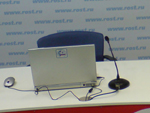 Для этой задачи мы использовали высокочувствительные конденсаторные конференционные микрофоны фирмы «Audio-technica» модель PRO 49 QL. Специфика конденсаторных микрофонов с кардиоидной диаграммой направленности позволила в небольшом помещении обеспечить качественный звук необходимой громкости, избежав при этом возникновения эффекта «обратной акустической связи». Эти современные микрофоны типа «гусиная шея» позволяют максимально приблизить головку микрофона к источнику звука, обеспечивая при этом комфорт выступающему. И, наконец, эти микрофоны максимально приемлемы для конференций с эстетической точки зрения, поскольку они не массивны и занимают минимум пространства.