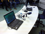 Нам часто приходится заниматься звуковым обеспечением различных программ , но это мероприятие имело свои специфические задачи. Было необходимо обеспечить звукоусиление в самом конференц-зале, где проходила встреча, вывести звук на динамики в соседнее помещение, где работали стенографисты, и запустить сигнал с микшерного пульта в локальную сеть «суперкомпьютерного центра академии наук» для on-line трансляции происходящего через сеть Интернет.