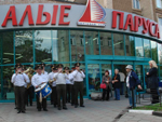 9 мая 2009 года по заказу сети торговых центров «Алые паруса» мы организовали выступления военного духового оркестра перед входом ТЦ.