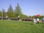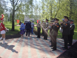 Начались мероприятия с торжественного митинга возле мемориала памяти павшим войнам, в сопровождении военного оркестра и дробь барабанщиц. В заключение митинга под звуки знаменитого старинного марша композитора Василия Агапкина «Прощание славянки» по главной аллее парка парадным построением прошли части военного гарнизона в парадной форме и форме сухопутных войск времен Великой отечественной войны.